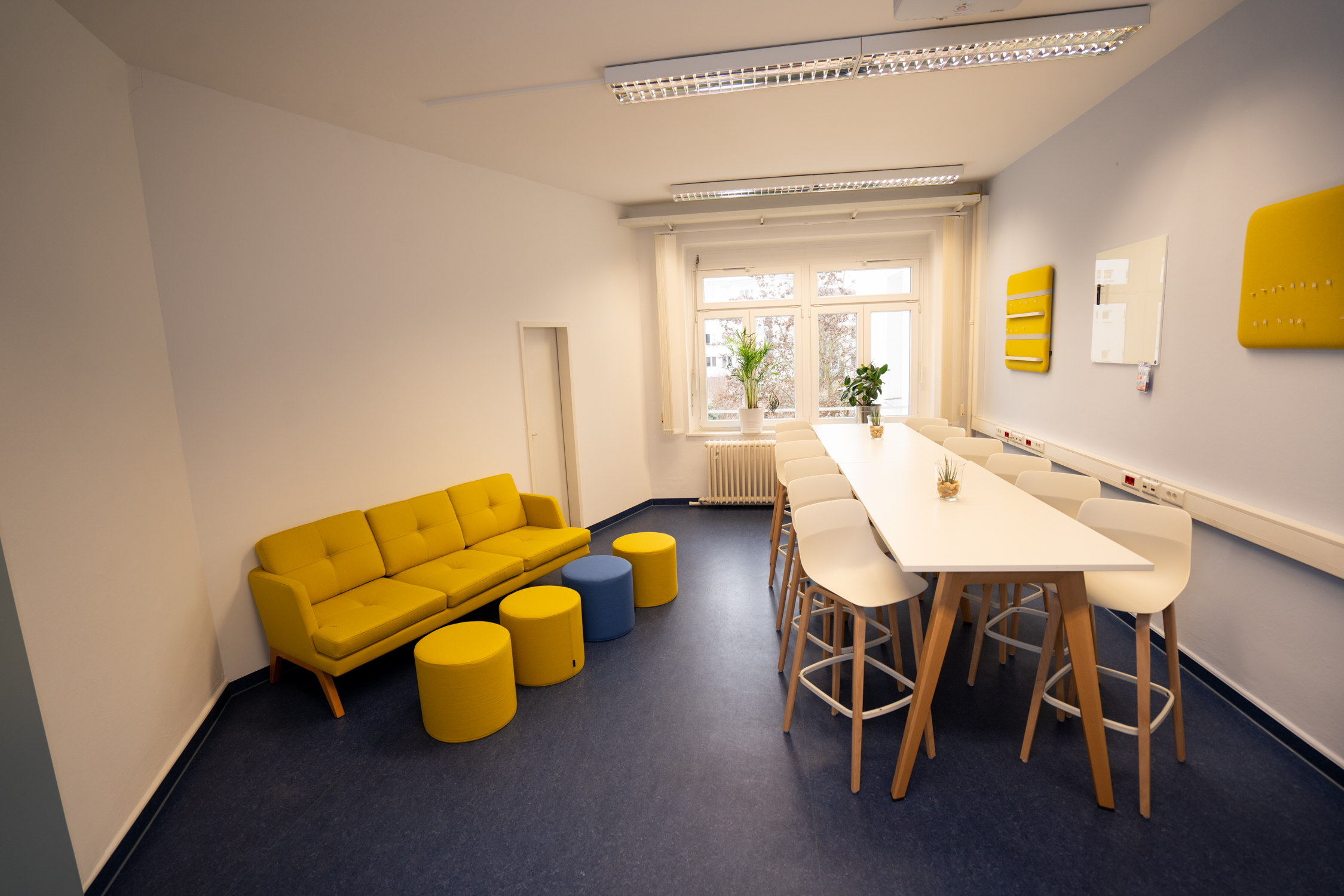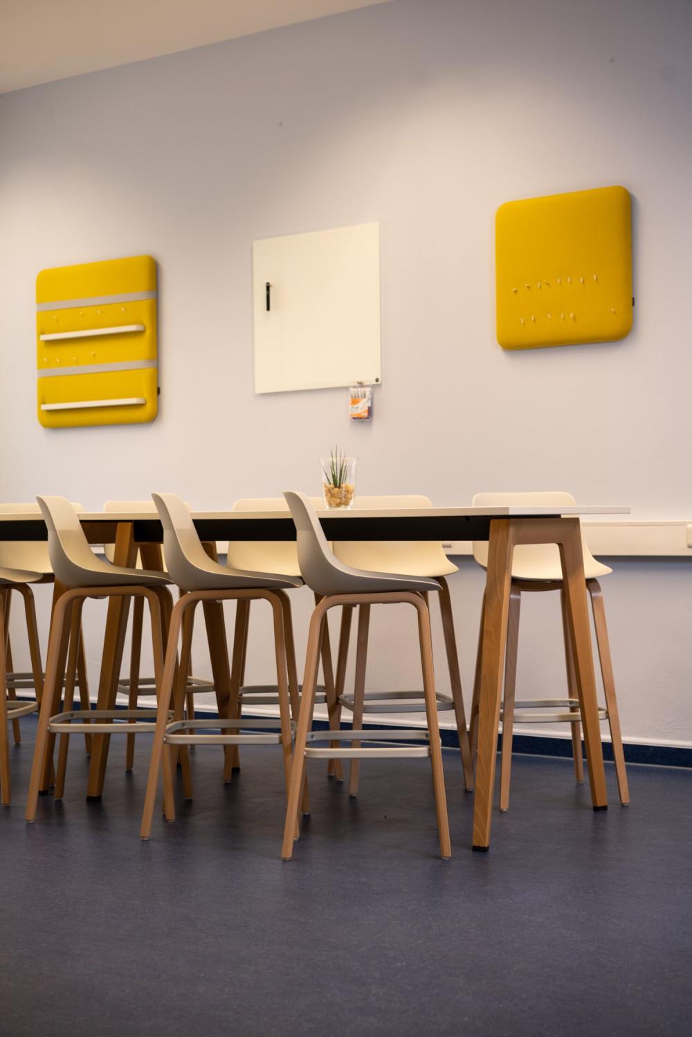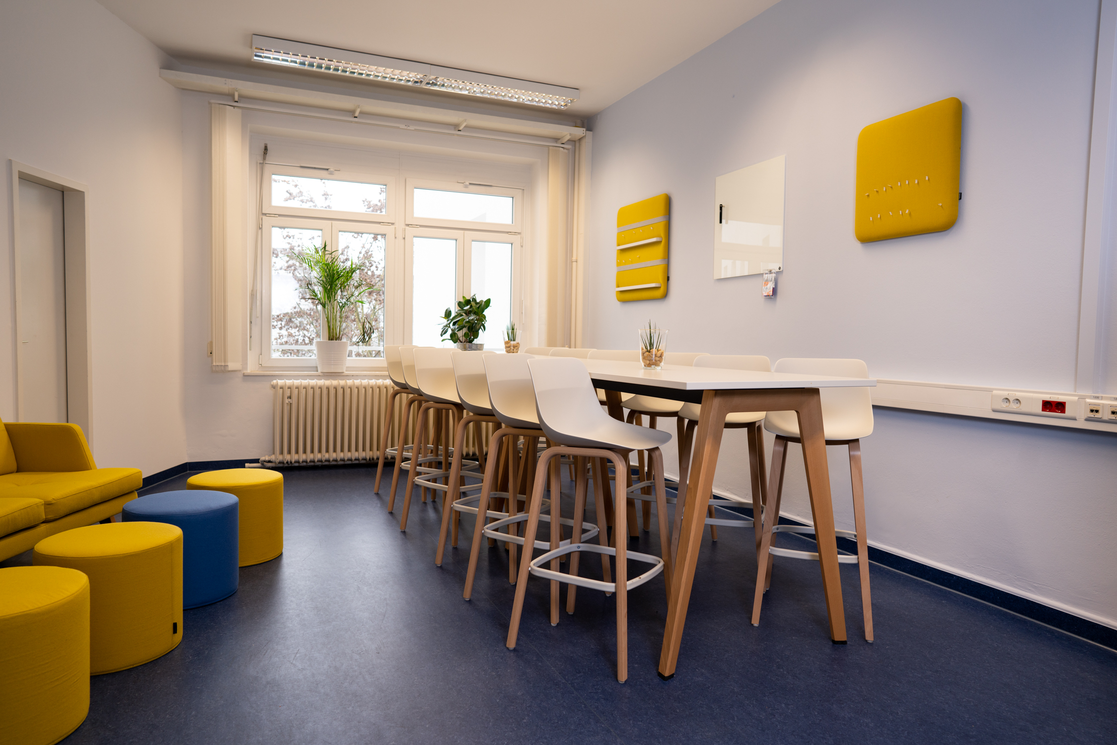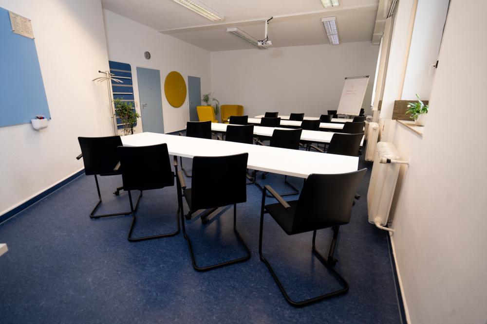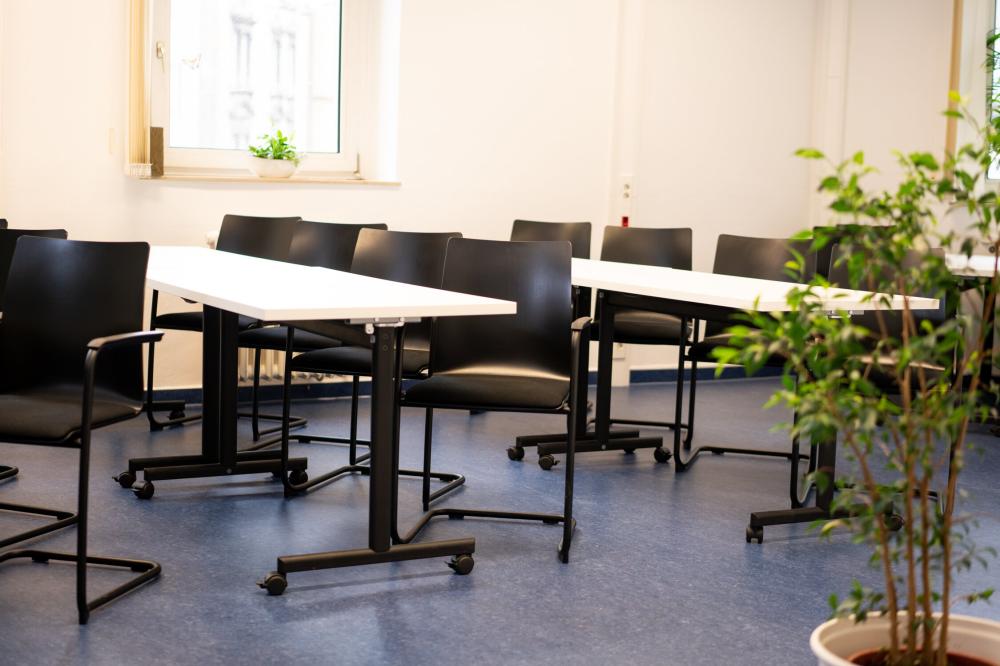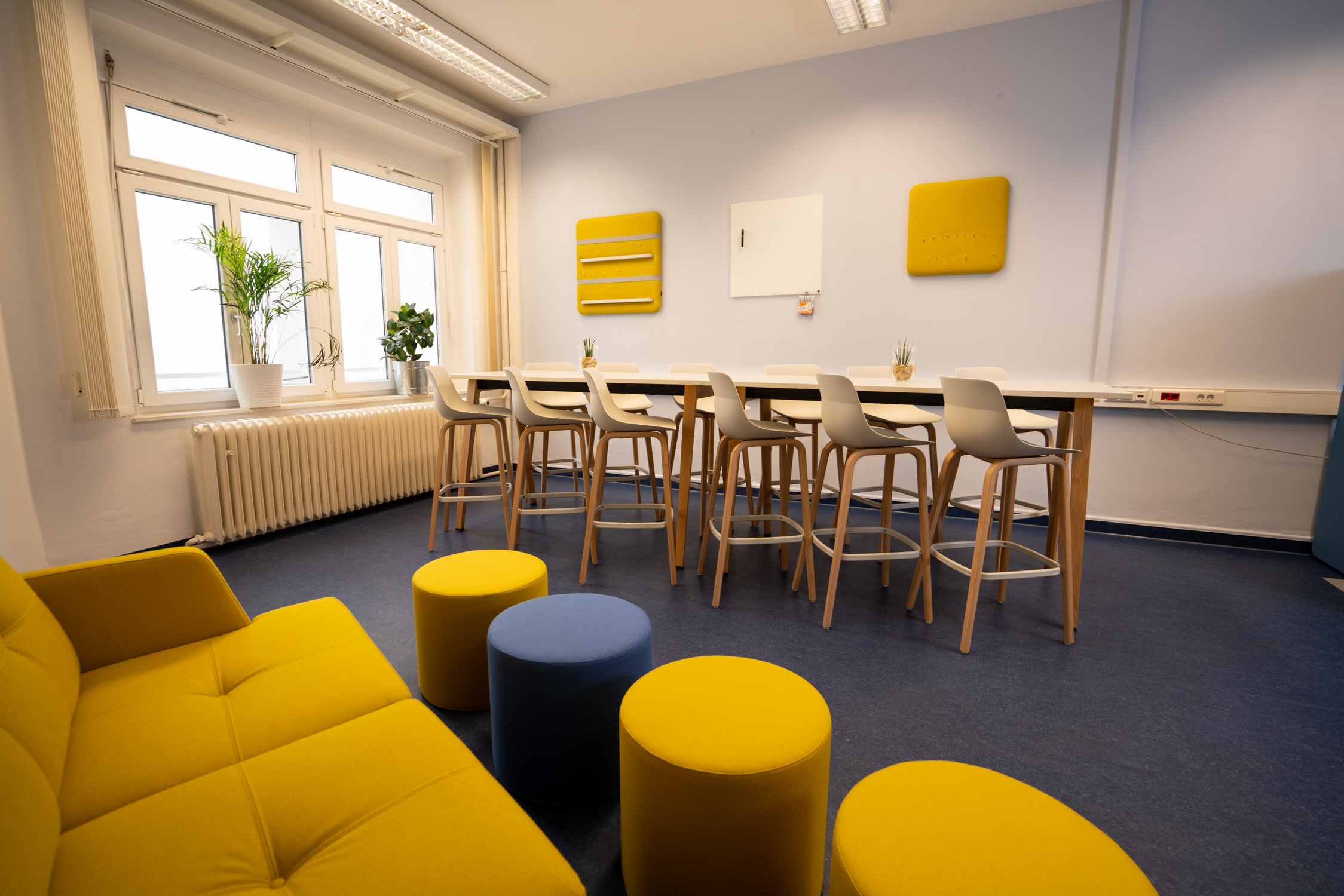 Die Schulungsräume sind mit modernen Akustikelementen und praktischen Glaswhiteboards ausgestattet, um eine produktive und angenehme Lernumgebung zu bieten. Unsere flexiblen Tische auf Rollen ermöglichen es, den Raum mühelos an unterschiedliche Bedürfnisse anzupassen – ob für Workshops, Meetings oder individuelle Arbeitsphasen.
